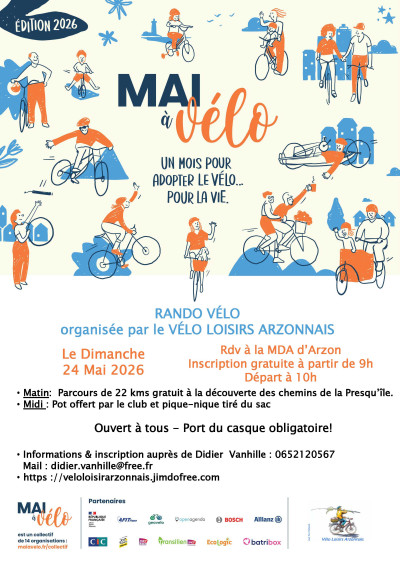 Le Vélo Loisirs Arzonnais (VLA) vous propose de participer à la manifestation " Mai à Vélo"